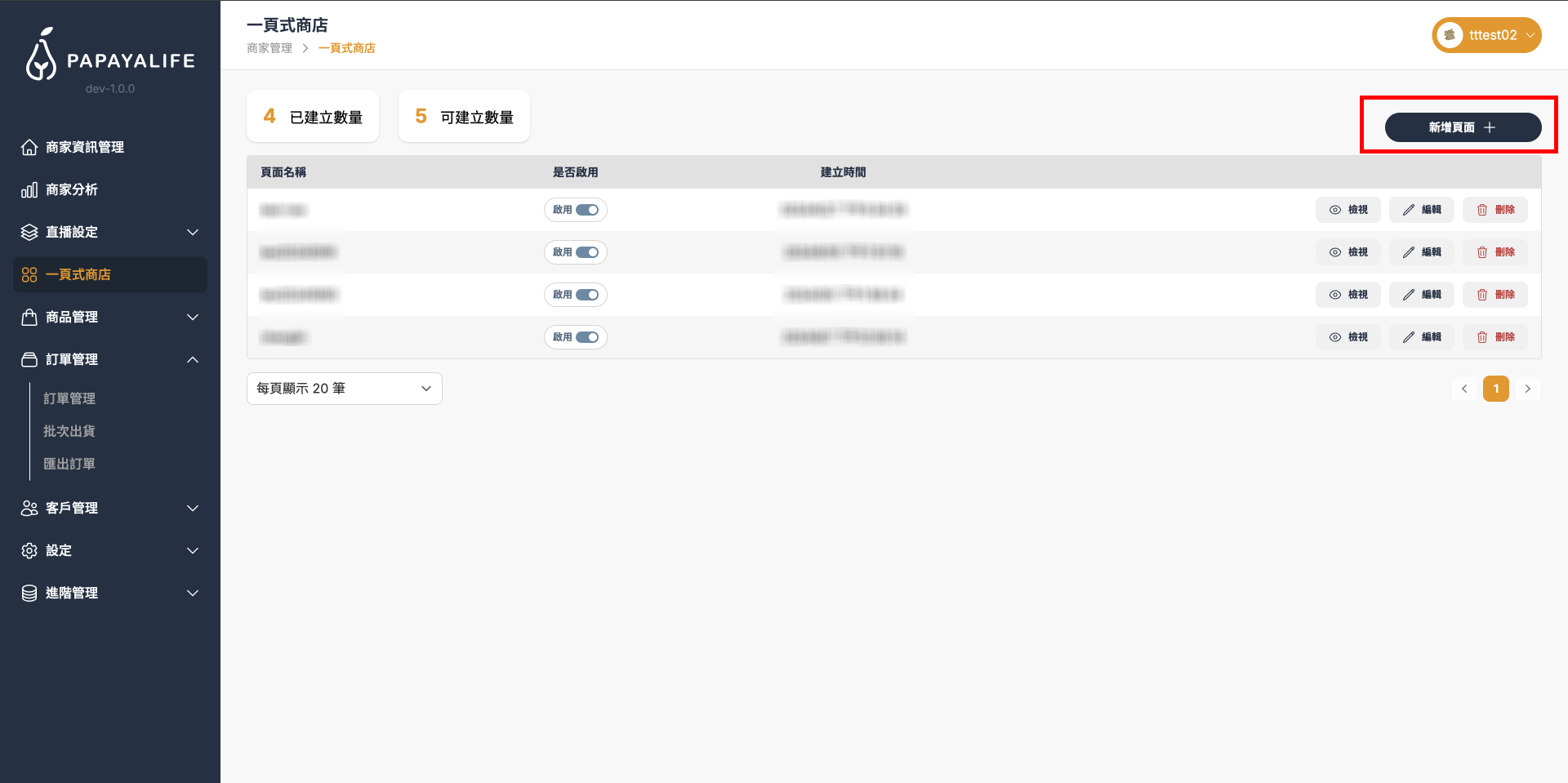 點擊「新增頁面」,點擊後顯示商店編輯畫面
