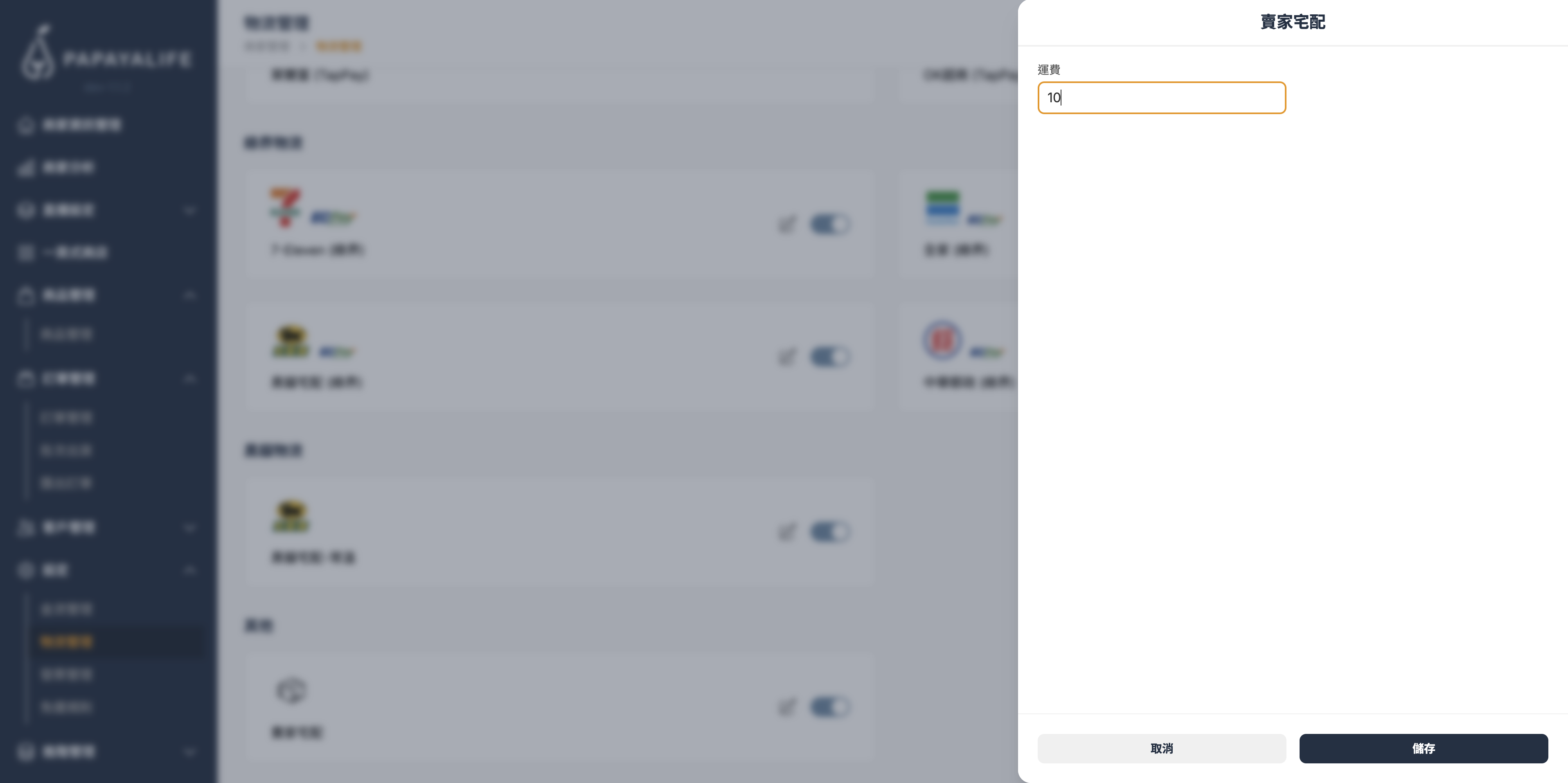 賣家宅配¶ Abstract 賣家自行將商品寄至收貨地點 賣家宅配無法自動更新配送狀態,需至「訂單管理」頁面手動更新配送狀態 點擊賣家宅配 區塊編輯 icon 於編輯視窗進行編輯 編輯完成後,點擊「儲存」